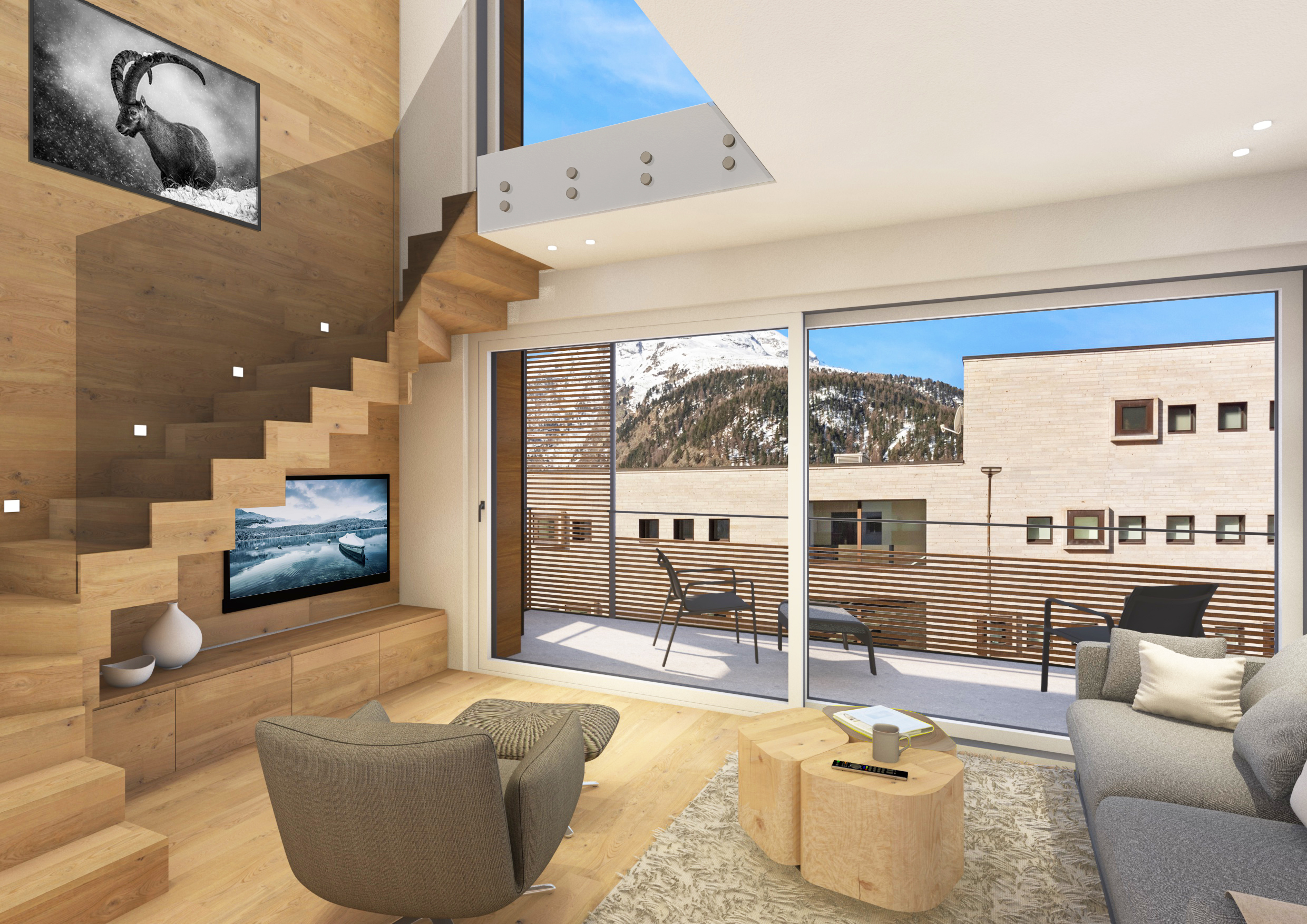 Der Name «CENTROVISTA» vereint auf elegante Weise zwei wesentliche Elemente: die zentrale Lage und den weiten Blick. «Centro» symbolisiert den Puls der zentralen Lage, den direkten Draht zum Dorfleben und die hervorragende Anbindung an das, was den Alltag ausmacht. «Vista» hingegen verweist auf den besonderen Blick auf die umliegende Bergwelt.